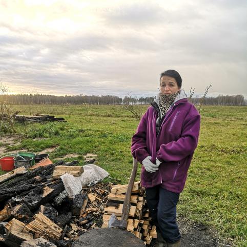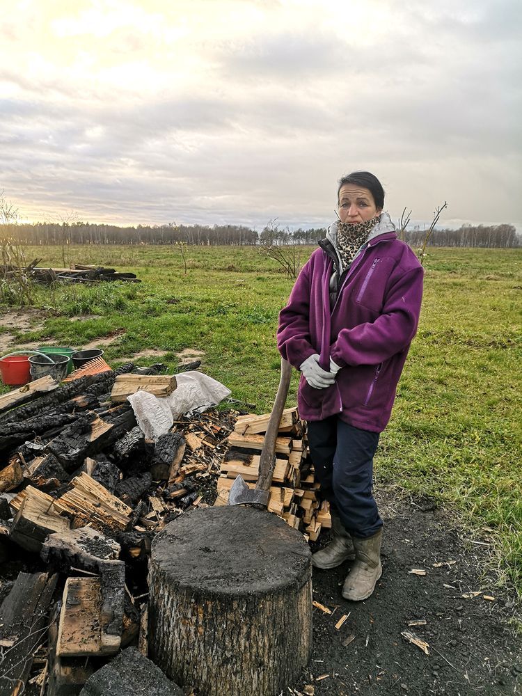 Ritą Drungilienę sutikome kieme kapojant malkas.