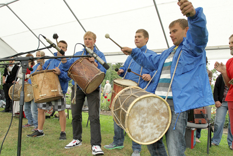 GRIAUSMAS: Grupė „Ritmas kitaip“ per Žolinių šventę pirmą kartą ritmą mušė tradiciniais lietuviškais būgnais.