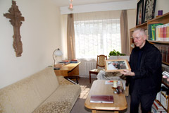 KAMBARĖLIS: Kambarėlyje, kur ilsėjosi popiežius išlikę tie patys baldai tik nėra jokio atminimo ženklo, kad prie jų lietėsi palaimintasis.