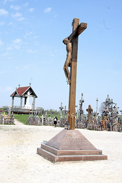 KYŽIUS: Popiežiaus kryžius Kryžių kalne buvo apšlakstytas ir krauju: 1995 metų rugsėjo 26— osios naktį čia buvo nužudytas Kryžių kalną ir popiežiaus kryžių saugojęs 22 metų šiaulietis policininkas Tomas Naumovas.