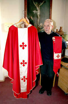 ARNOTAS: Bažnyčioje ne iš karto surado arnotą ir stulą, kuriuos dėvėjo Jonas Paulius II per mišias Kryžių kalne.