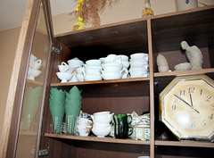 INDAI: Vienuolyno valgomojo indaujoje po popiežiaus vizito likę balto porceliano indai, iš kurių dabar valgo visi vienuolyno svečiai.