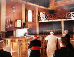 MIŠIOS: Mišių stalas, kurį lietė popiežiaus Jono Pauliaus II rankos mėtosi aukštyn kojomis aptriušusioje koplyčioje.