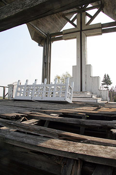 Kryžių kalne griūva apleista koplyčia, kurioje Jonas Paulius II aukojo iškilmingas mišias. Grindys ištrūnijusios. Stalas, prie kurio popiežius aukojo mišias ir laimino besimeldžiančius žmones, apverstas aukštyn kojomis. Apsilaupiusi sakykla nustumta į šoną. Laiptai seniai sutręšę. Pamatai — gelžbetoninės konstrukcijos — dar tvirti.