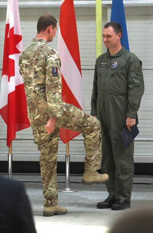 Po pasikeitimo ceremonijos į dangų pakilo britų „Eurofighter Typhoon“, lenkų MiG-29 bei portugalų F-16 „Fighting Falcon“ ir kanadiečių CF-18 „Hornet“.