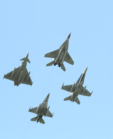 NAIKINTUVAI: Danguje – keturių šalių naikintuvai.