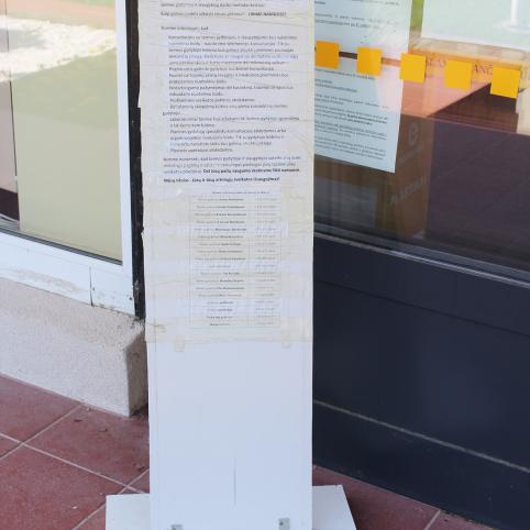 Pasak Janinos, registratorė informavo, jog numerį galinti rasti prie poliklinikos durų pastatytame informaciniame stende. Bet vėl problema – pensininkė negalėjo įžiūrėti smulkiai surašytų pavardžių ir skaičių, ji negalėjo atsitūpti ar pasilenkti iki stendo apačios, vos ne iki žemės. (Moteris mano, jog informacija turėtų būti „akių lygyje“.) Laimė, jog į pagalbą atskubėjo kiti eilėje stovėję biržiečiai.