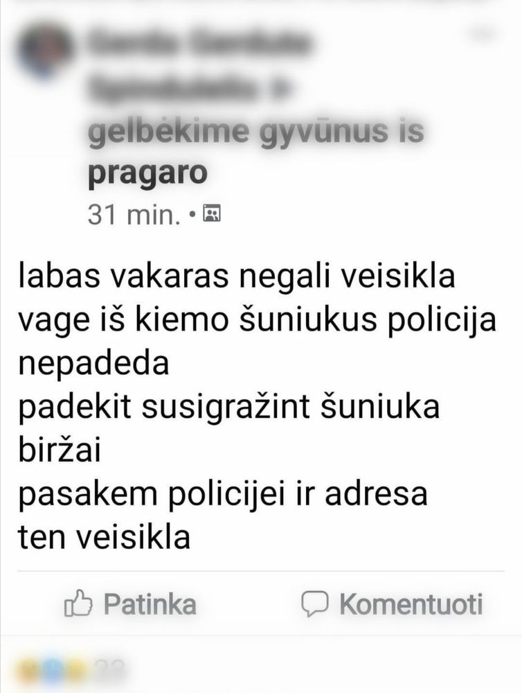 Pirkėjai buvo apstulbę, kai esą paskutinę sutarto termino dieną, į namus įsiveržė veisėjos giminaitis ir pagrobė mažąjį rusų teiterjerą. Pasak Giedrės, ji susisiekė su tariama veisėja. Ji paaiškino persigalvojusi ir pasiūlė vietoj šuniuko paimti kalytę.