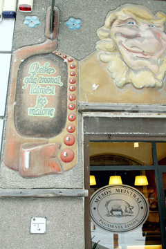 Šiaulių bulvaro kūrėjai manė, kad virš buvusios parduotuvės durų dekoratyvinis akcentas su raudonskruosčiu vyruku, teikiančiu žmonai gėles, visada bus ženklas, kad čia gėlių parduotuvė. Nieko panašaus. Gyvenimas kuria savo scenarijų.