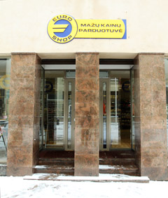 Neprastą kosmetikos ir parfumerijos prekių parduotuvę mena tik marmurinės kolonos. Čia dabar prekiaujama smulkmenomis po vieną eurą.