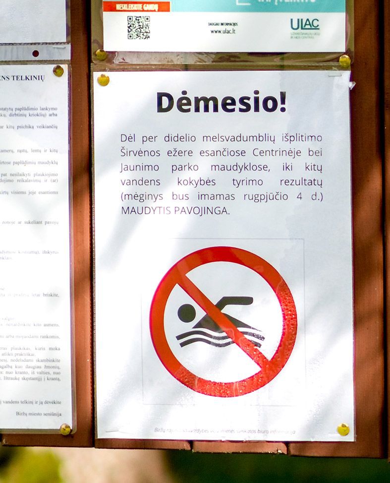 Liepos 22 d. atliktų tyrimų duomenimis, Biržų Širvėnos ežero Centrinėje maudykloje nustatytų melsvadumblių kiekis viršijo normas, todėl maudymasis kėlė grėsmę sveikatai.