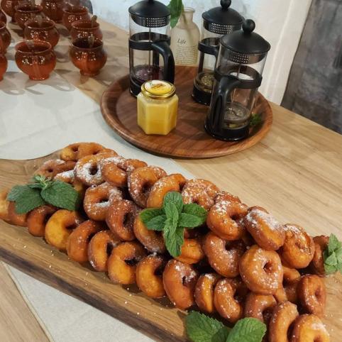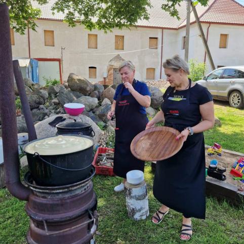 Palėveniečiai vienuolyno kieme pasistatė molinę rytietišką krosnį – tandyrą, įsirengė virtuvę, kur čirškina ne tik savo krašto, bet ir vienuolių mėgtus patiekalus. Lankytojams papasakoję apie vienuolių gyvenimo būdą ir mitybą, siūlo paragauti, o gal net ir patiems išsikepti ypatingų vienuolyno baronkų, pasivaišinti troškiniu, senovišku virtieniu ir kitais gardumynais, pagurkšnoti arbatos iš upės šlaituose surinktų šaltalankių, šimtamečių liepų alėjos liepžiedžių ir kitų augalų. „Vienuoliai turėjo savo bites, jie buvo nuostabūs ūkininkai, turėjo daug žemių. Pirmieji parsivežė kavą, turėjo vaistinę ir augino žoleles. Mes taip pat įkūrėme arbatų kampelį, prisidžioviname ekologiškų žolelių ir šaltais žiemos vakarais geriame jas užkasdami sausainiais su vienuolyno antspaudu“, – apie jaukią ir su vienuolyno gyvenimu suaugusią kasdienybė pasakojo L. Juknevičienė.