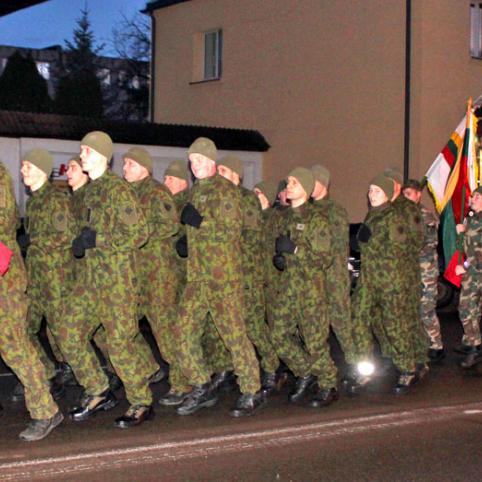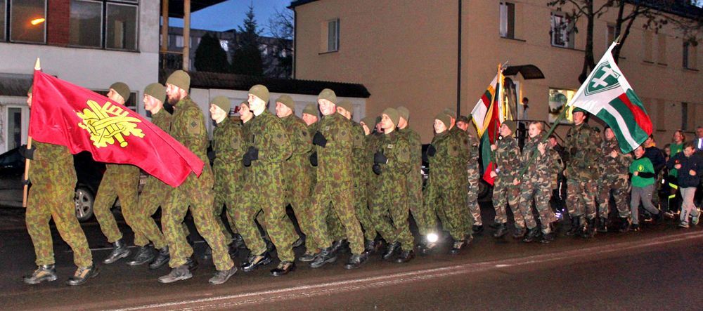 L. Vi­re­liū­nie­nė džiau­gė­si šau­liais ir ka­riais sa­va­no­riais, ku­rie kas­met pa­kar­to­ja pa­gar­bos ir at­mi­ni­mo sim­bo­li­nį bė­gi­mą, nu­si­lenk­da­mi ir Lais­vės ka­riams, pa­lai­do­tiems Švy­tu­rio gat­vė­je.