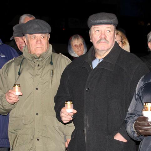 Ren­gi­nio da­ly­viai, pri­si­min­da­mi žu­vu­sius, dė­ko­da­mi jiems už tai, kad esa­me lais­vi, su­si­kau­pė ty­los mi­nu­tei bei pa­dė­jo gė­les ir už­de­gė ži­bu­rius prie Nep­rik­lau­so­my­bės pa­mink­lo.