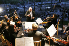Prie Ch. Frenkelio vilos vartų sustoja autobusas. Iš jo kraustosi muzikantai, iš bagažinės traukdami instrumentus. O maestro D. Katkus pradeda blaškytis, nes nežino organizatorių pageidavimų, kokius kūrinius groti. „O ką mes čia turime groti? Turiu išsiaiškinti, ką groti, kiek groti. Aš bijau įžeisti Šiaulius“.