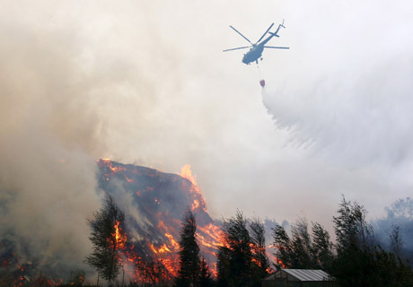 PASIKĖSINIMAS: Vaizdas iš kariškių sraigtasparnio. Ugnis ir dūmai kėsinasi įkibti į gyventojų namus.