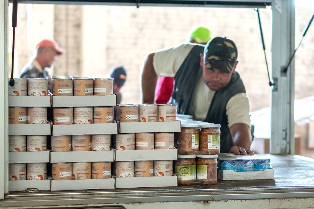 Vieno paketo svoris – 3 kg 367 gramai. Šio dalijimo metu gyventojus pasieks grikių kruopos, rapsų aliejus, vištienos konservai, keptos konservuotos pupelės pomidorų padaže, konservuota burokėlių sriuba, avižiniai sausainiai su šokolado gabaliukais, greito paruošimo avižų košė su džiovintomis uogomis ir saldintas sutirštintas pienas.