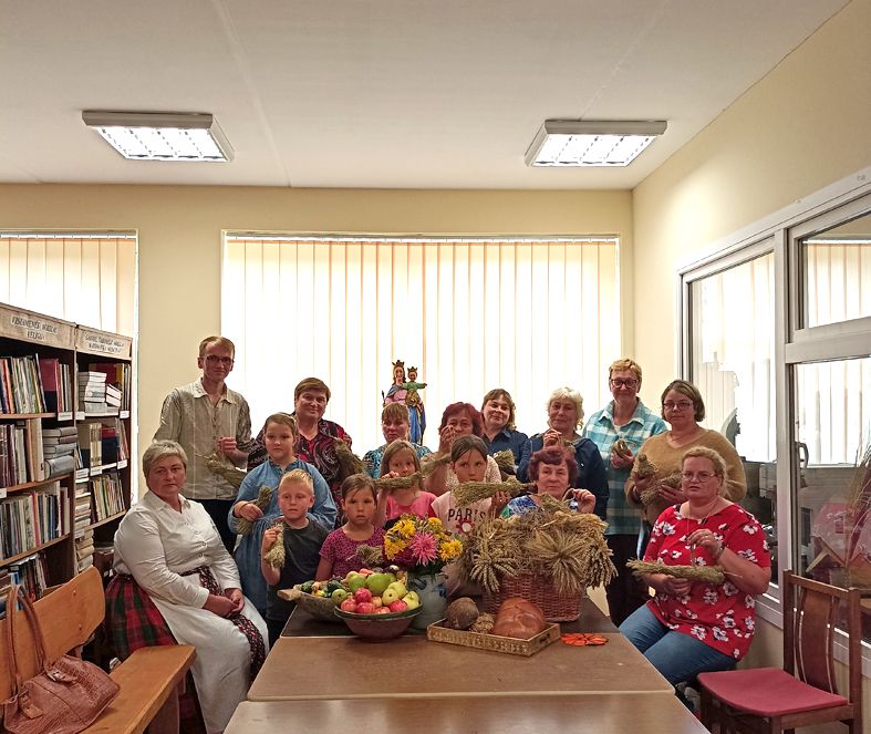 Edukacinio renginio metu bibliotekininkė Jolanta dalyvius supažindino su Žolinės šventės tradicijomis, reikšme ir papročiais, o kolega vyresn. bibliotekininkas Evaldas visus susirinkusius mokė floristikos subtilybių – pasigaminti paukštį – pavasario ir vasaros – gyvybės simbolį iš naujo derliaus šieno.