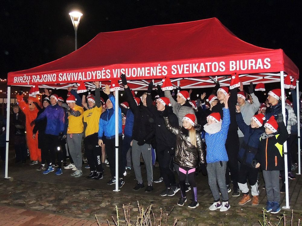 Į tradicinį kalėdinį bėgimą pakvietė Biržų rajono savivaldybė ir Biržų visuomenės sveikatos biuras. Užsiregistravo apie 150 bėgikų. Fantazijos ir išradingumo jiems netrūko – į bėgimą jie susiruošė pasipuošę nuotaikingais kostiumais. Už išradingumą puošniausi bėgikai buvo apdovanoti prizais.