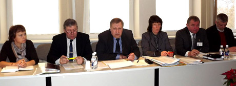 PRISTATYMAS: Mokyklų tinklo pertvarką žurnalistams pristatė (iš kairės) rajono Tarybos švietimo, kultūros ir sporto komiteto pirmininko pavaduotoja Daiva Miliauskienė, mero pavaduotojas Antanas Bezaras, meras Algimantas Gaubas, Švietimo ir sporto skyriaus vedėja Judita Šertvytienė, Savivaldybės administracijos direktorius Kęstutis Lukšas ir rajono Švietimo įstaigų direktorių asociacijos pirmininkas Artūras Kulikauskas.