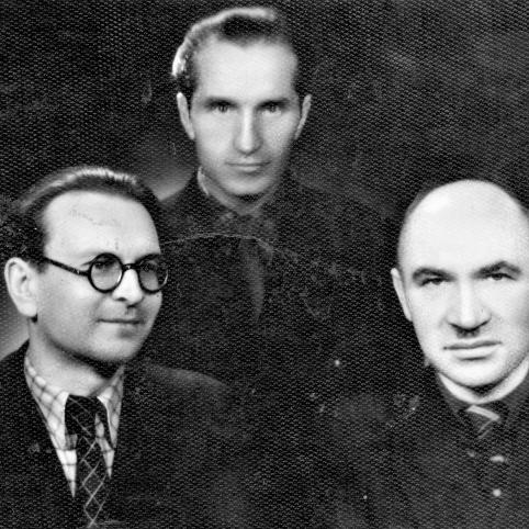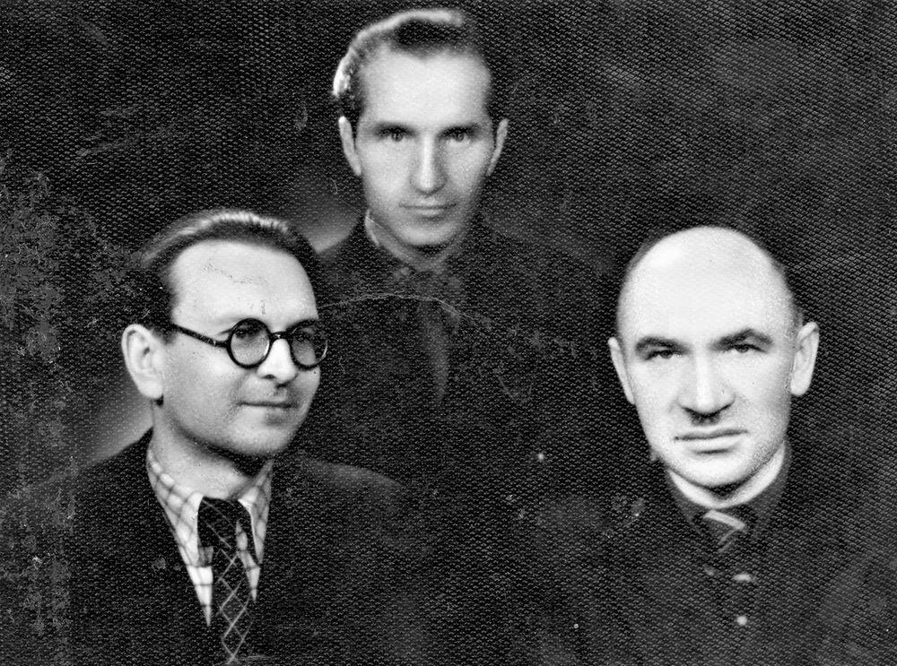 Pirmas iš kairės – Edvardas Pranckūnas, pirmas iš dešinės – Romualdas Klasčius. K. Binkio „Atžalyno“ premjera įvyko 1944 m. balandžio 15 d. Artėjo Raudonoji armija. Oficialiai įkurto Biržų miesto teatro trupė spėjo suvaidinti per 46 spektaklių.