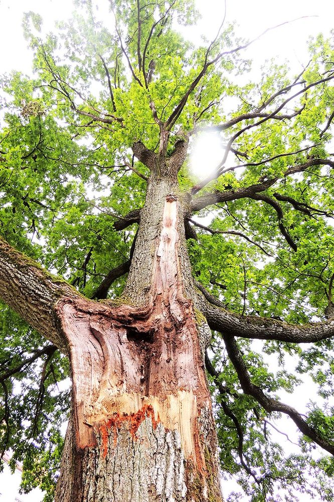 Ilgai žaliavusį ąžuolą dėl vėjo nuplėštos šakos gali ir nupjauti.