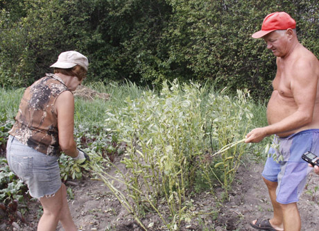 PAGALBA: Vasarą sode leidžiančiai poniai Birutei rinkti pupas padeda brolis Algirdas.
