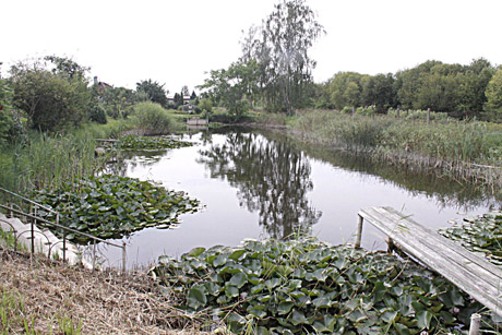 MAUDYNĖS: Lelijomis apaugusiame tvenkinyje sodininkai maudosi, kai būna karšta.
