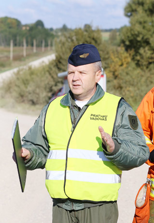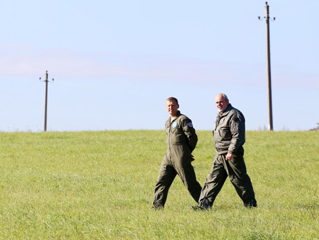 Į pratybas „Griausmas-2016“ atvyko ir Karinių oro pajėgų Aviacijos bazės vadas pulkininkas Marius Matulaitis. 2011 metais po katapultavimosi jis nusileido į Rėkyvos ežerą. Dešinėje – kapelionas majoras Virginijus Veilentas.