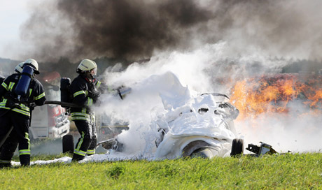 GAISRAS: Ugniagesiai gelbėtojai užgesino nuolaužų liepsnas.