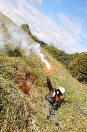 SIGNALAS: Pagalbą pelkėje nukritę lakūnas stengėsi prisikviesti uždegtu fakelu.