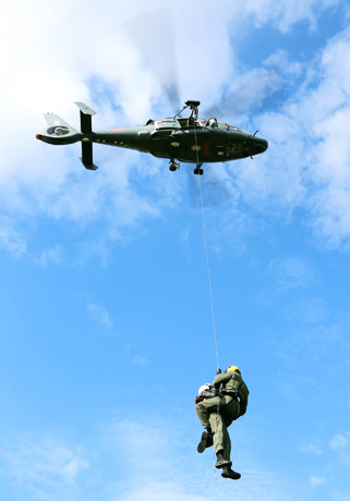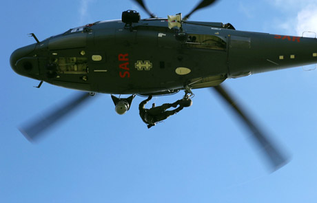 ĮGŪDŽIAI: Gelbėtojas grįžta į sraigtasparnį.