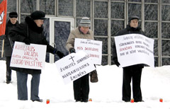 Ant „Saulės“ laiptų moterys degino žvakutes, sakė taip norinčios paminėti visus išėjusius ir išvažiavusius iš Lietuvos dėl netinkamų valdžios sprendimų.