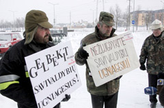 PIKETAS: Šiaulių ugniagesiai premjerą A. Kubilių su ministrų komanda pasitiko piketu.