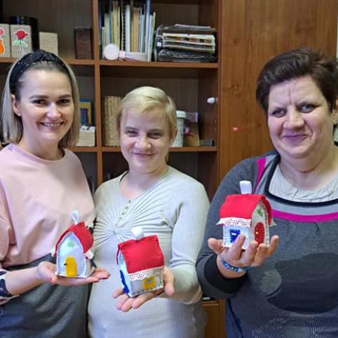 Prie pirmosios ponios Dianos Nausėdienės akcijos papuošti prezidentūros eglę pačių gamintais nameliais prisijungė ir biržiečiai, jų gretose ir Biržų neįgaliųjų dienos centro lankytojai, gaminę kalėdines dekoracijas.