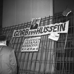 ŠŪKIAI: 1991 metų sausio 14-oji. Prie parlamento — laisvės gynėjų pagaminti plakatai.