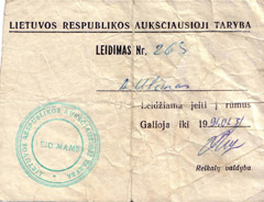 LEIDIMAS: Leidimas patekti į Aukščiausiąją Tarybą A. Ulčinui buvo išduotas kaip parlamento gynėjui, galėjusiam patekti sausio įvykių metu į Aukščiausiąją tarybą.