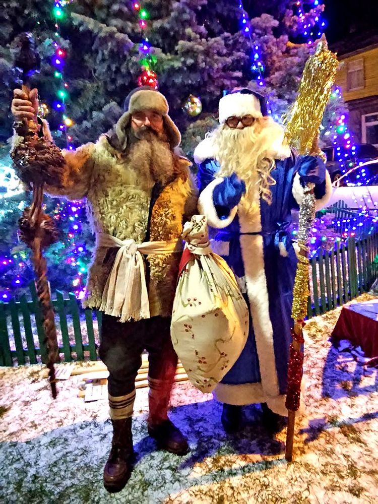 Groja muzika. Kalėdų senelius apspitę vaikučiai rodo ką moka, džiaugiasi dovanėlėmis. Sušalusius kviečia sušilti, išgerti karštos arbatėlės arba kavos puodelį, pasivaišinti sausainiais nuolatinės tokių vaišių ruošėjos iš Vabalninko „Saulalas“ ansamblio Marytė Žiaugraitė, Danutė Brazdžiūnienė, Vida Jasinevičienė. Oras nešaltas. Yra truputis sniegučio. Malonu pasigrožėti skulptūromis, žybsinčia eglute, nusifotografuoti, ypač su Seneliu prie eglutės. Šventėms jau pasipuošusi gimnazija, kai kurios miesto įstaigos, atskiri gyventojai. Gruodžio 19 urėdijoje žada dalinti eglių šakas. Tada mūsų butai gaus kalėdinį akcentą. Su šventėmis!