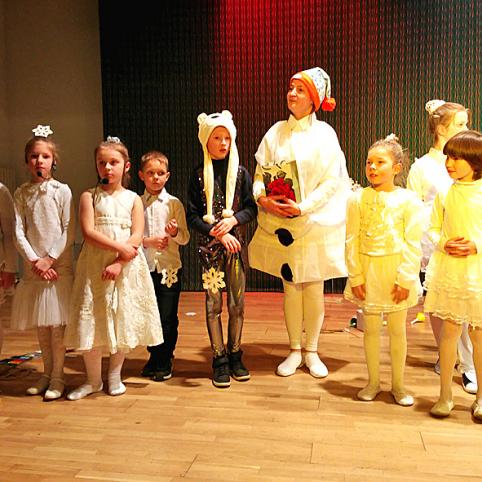Šventiniai eglutės įžiebimo renginiai prasidėjo Vabalninko kultūros namų salėje. Čia suėję ir vaikai, ir vyresni stebėjo Papilio pagrindinės mokyklos jaunųjų dainorėlių suvaidintą miuziklą „Kartą snaigių karalystėje“, kurį paruošė vadovaujami Vigilijos Macienės.