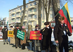 PIKETUOTOJAI: Pikete dalyvavo apie 10 plakatais nešinų piketuotojų.