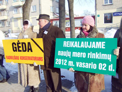Piketo dalyviai laikė plakatus su užrašais: „Vagis iš savivaldybės — į kalėjimą“, „Gėda Radviliškio konservatoriams“, „Reikalaujame naujų mero rinkimų 2012 metų vasario 2 dieną“ .