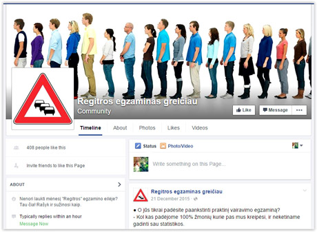 Socialiniame tinkle „Facebook“ galima atrasti specializuotą uždarą grupę, skirtą pirkti – parduoti „Regitros“ vietas. Joje reklamuojamos paslaugos – paankstinti praktinį vairavimo egzaminą.