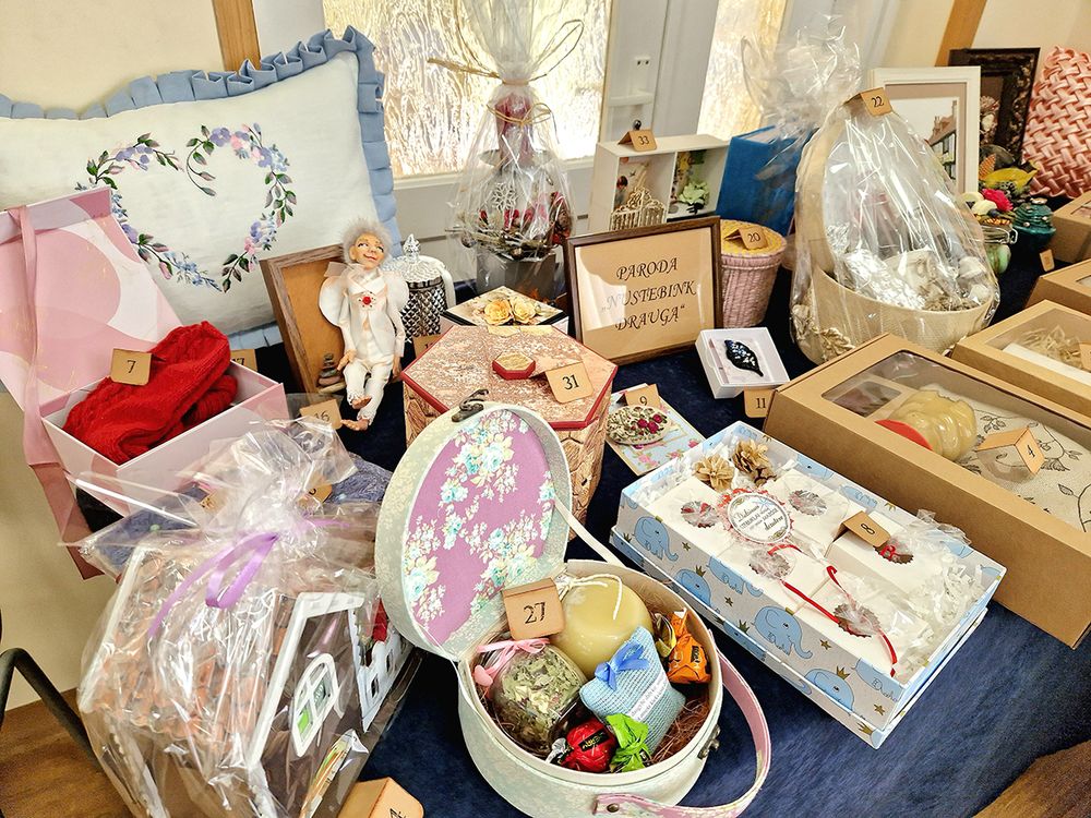 Moterys į sąskrydį skubėjo su savo kurtomis dovanomis kolegėms. Kasmet vyksta mini parodėlė, kurios metu dalyvės bando atspėti, kurios kolegės rankdarbis, tada renkamas tų metų įspūdingiausias darbas. Šiemet dalyvės nustebino išradingumu, nes kolegėms spėlioti buvo išties nelengva.