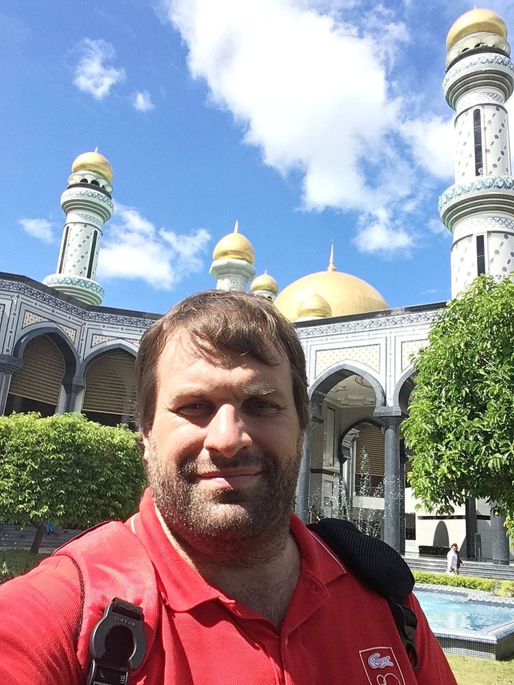 Prieš keletą metų atostogaudamas Malaizijoje, nepraleidau unikalios progos apsilankyti Brunėjuje. Iš Malaizijos kurortinės salos Borneo oro uosto Kota Kinabalu skrydis į Brunėjaus sostinę Bandar Seri Begavaną trunka vos 30 minučių, kur skraido karališkosios šios šalies oro linijos. Prieš lėktuvui pakylant į orą, meldėsi orlaivio įgula, stiuardesės ir islamą išpažįstantys keleiviai. Kai po to paaiškino „Royal Brunei Airlines“ darbuotojai, tokia jų oro bendrovės tradicija, todėl malda yra būtinas atributas prieš kiekvieną skrydį iš Brunėjaus ir į šią islamišką valstybę.