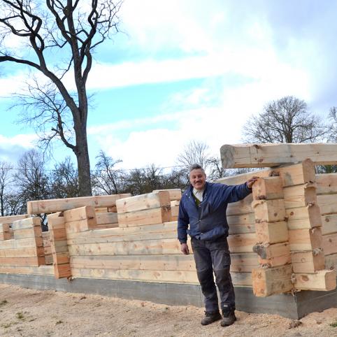 Nau­jų na­mų sta­ty­bos kai­me – re­te­ny­bė. Ta­čiau Va­bal­nin­ko se­niū­ni­jo­je, Šal­nių kai­me, ku­rio gy­ven­to­jus ant ran­kos pirš­tų su­skai­čiuo­si, ky­la nau­jas rąs­ti­nis na­mas. Nau­ją na­mą sa­vo gim­ti­nė­je sta­to pa­ne­vė­žie­tis Jo­nas Ja­nuš­ke­vi­čius.