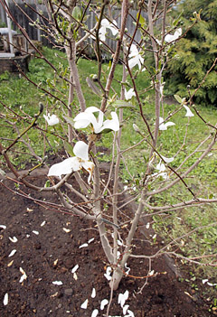 MAGNOLIJOS: Pirmuosius magnolijų žiedus po praėjusią savaitę lepinusios pakando gegužės sniegas.