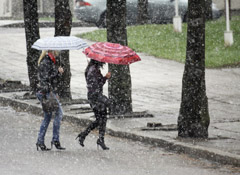 Vakar ir po nakties snigo didžiuliais kąsniais. Ypač gausiai pasnigo Kelmės rajone. Sužaliavę kaštonai ir pražydę medeliai, žiedus sukrovusios obelys ir vyšnios bei ankstyvosios gėlės narcizai apkrito storu sniego sluoksniu. Automobilių stovėjimo aikštelės atrodė kaip viduržiemį.