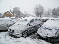 VIDURŽIEMIS: Kelmėje, aikštelėse apsnigti automobiliai priminė viduržiemį.