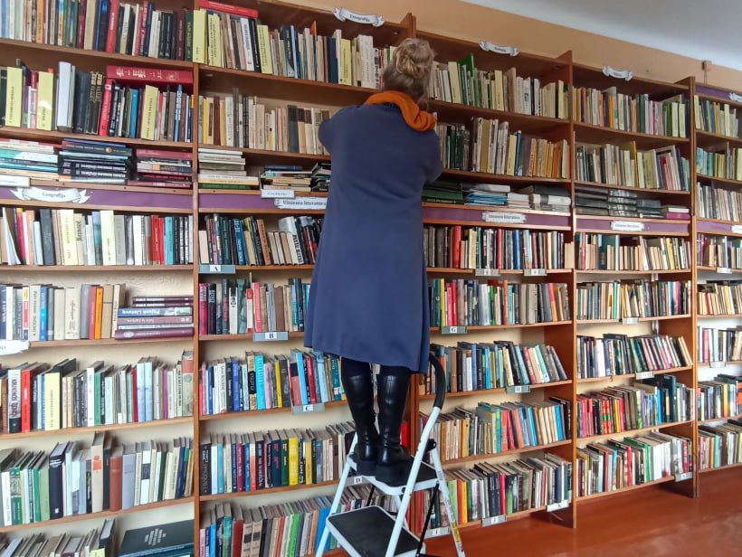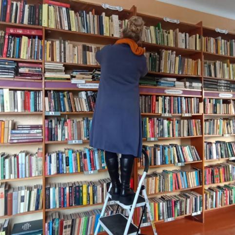 Kad būtų šilčiau, bibliotekininkė pasiūlė išgerti arbatos. Šnekučiavomės apie valandą, per tą laiką termometro stulpelis pakilo vos vienu laipsniu – iki 16. Bibliotekininkės pozityvumas stebina. „Sakau, kad dar visai geros sąlygos čia. Kadaise biblioteka buvo netoliese esančiame pastate, tai ten išvis buvo anei kiek nekūrenama. Džiaugiuosi, kad darbą vietoje turiu ir žmonės gali ateiti knygų pasiimti“, – sakė S. Bieliauskienė. Tame pačiame pastate yra ir bendruomenės patalpos. „Nelabai aktyvi mūsų kaimo bendruomenė, bet jų kambariai šiltesni, todėl pasitarnauja bibliotekos renginiams“,- aprodė S. Bieliauskienė.