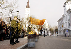 Kalbas, skaitomas iš popierių, keitė moksleivių atliekamos dainos. Kariai uždegė šešias išrikiuotas statines, simbolizuojančias laivės gynėjų prieš 21-eris metus degintus laužus.
